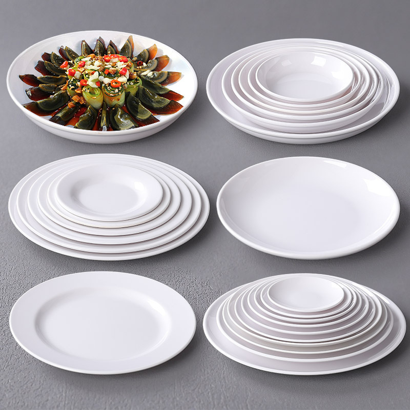 密胺圆盘商用仿瓷肠粉盘饭店宴席餐具塑料凉菜碟子快餐小炒热菜盘