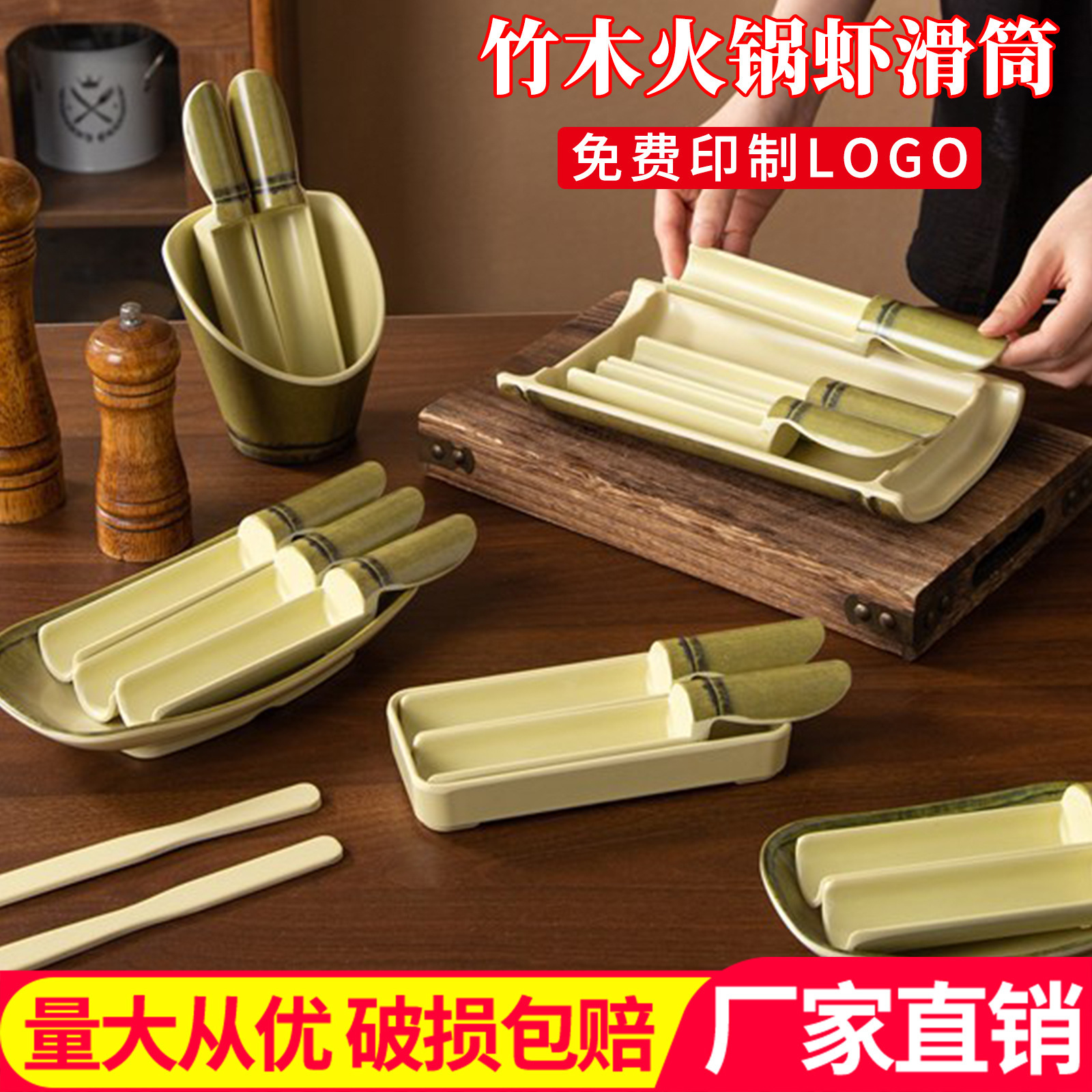 火锅虾滑竹筒密胺仿竹虾滑模具商用套装不发霉鱼丸肉丸装盘器盘子