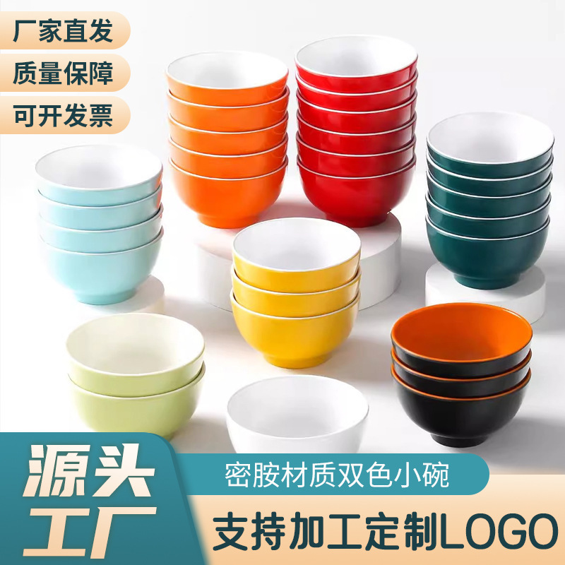 10个装加厚耐高温密胺双色塑料小碗米饭碗粥汤碗火锅蘸料碗饭店用
