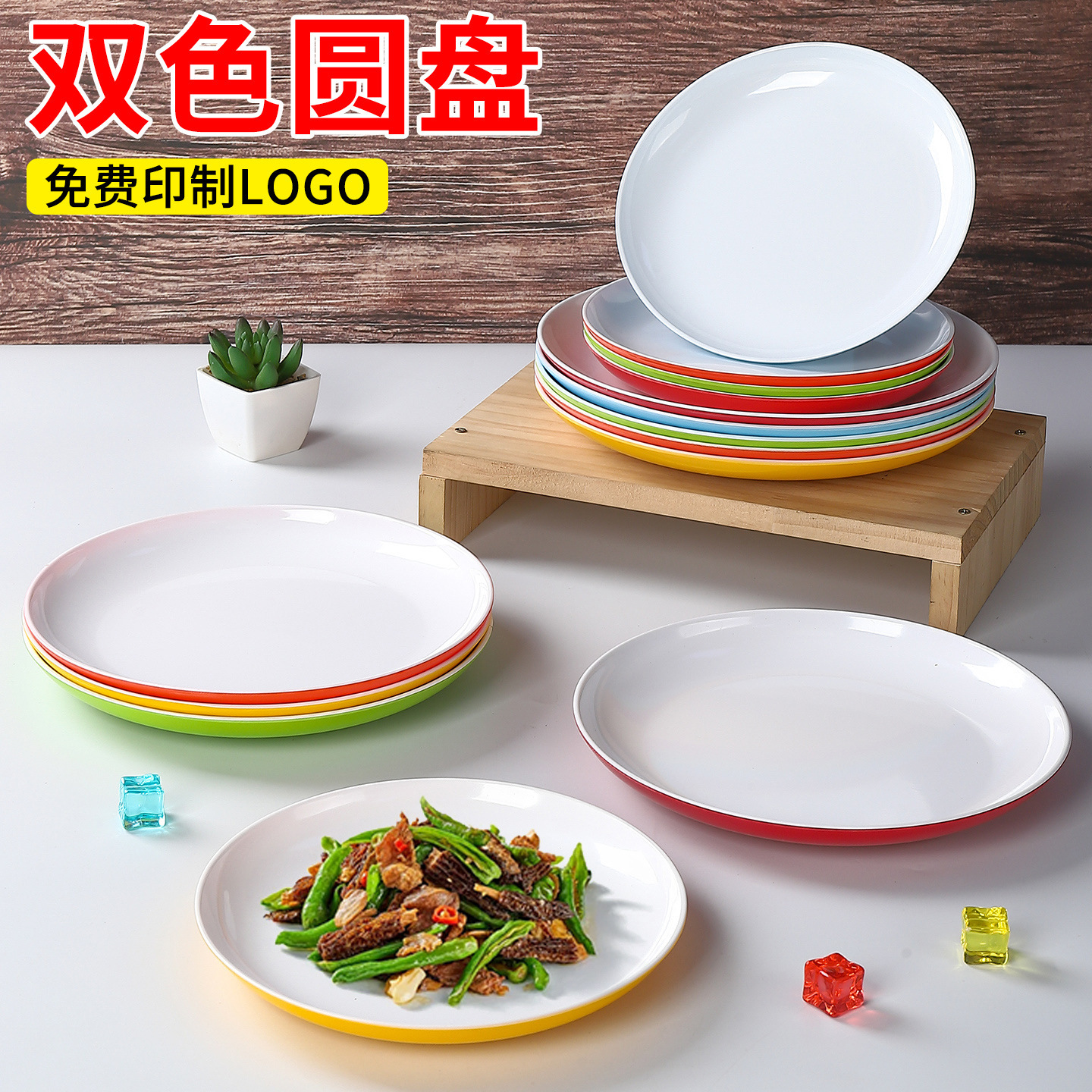 密胺圆形盘子饭店餐厅小炒热菜盘宴席餐具冷菜碟平盘塑料浅盘商用