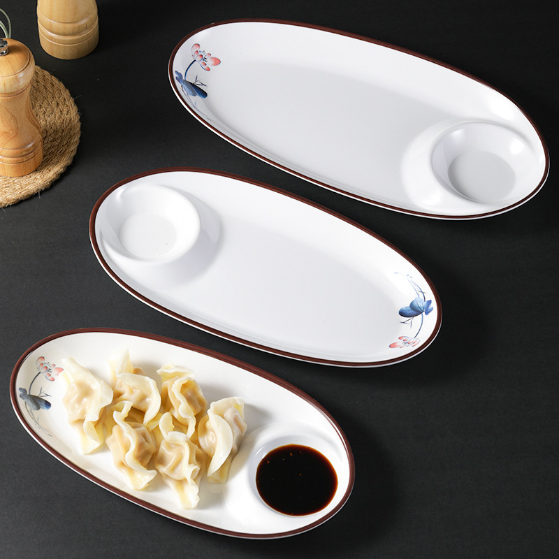 密胺餐具饺子盘带醋碟商用子母盘菜盘仿瓷小吃碟红糖糍粑小酥肉盘