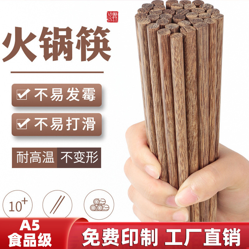 火锅专用筷子耐高温长筷实木日式鸡翅木无漆无蜡商用加长木筷10双