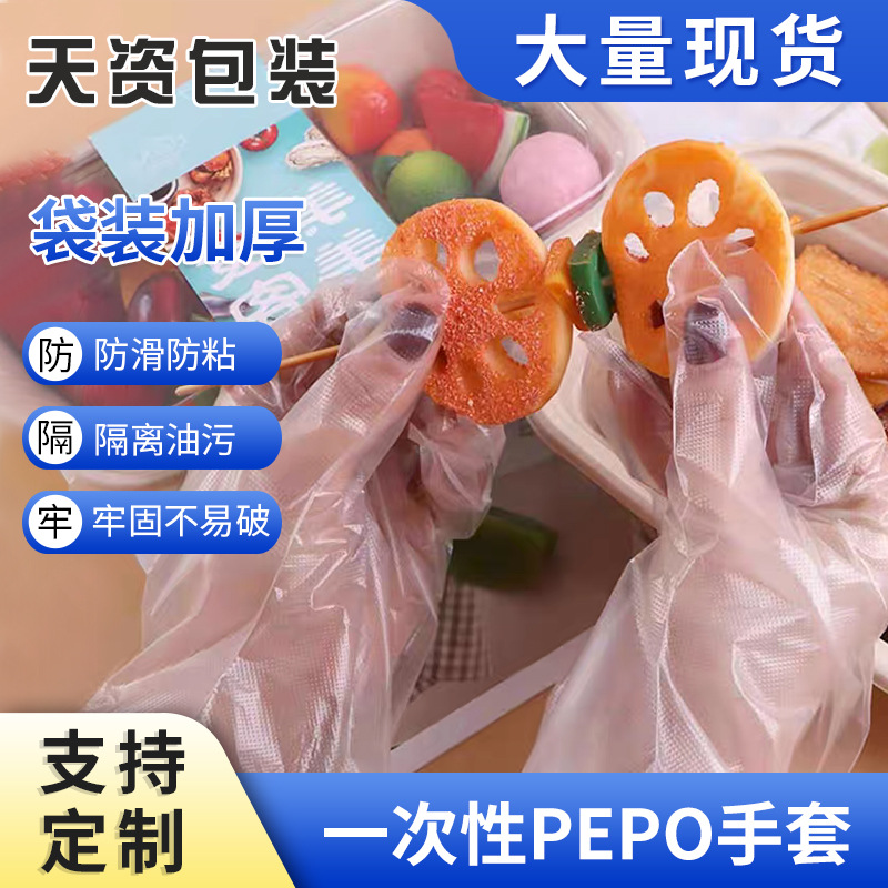 一次性加厚袋装PEPO手套透明防滑颗粒小龙虾烧烤一次性手套