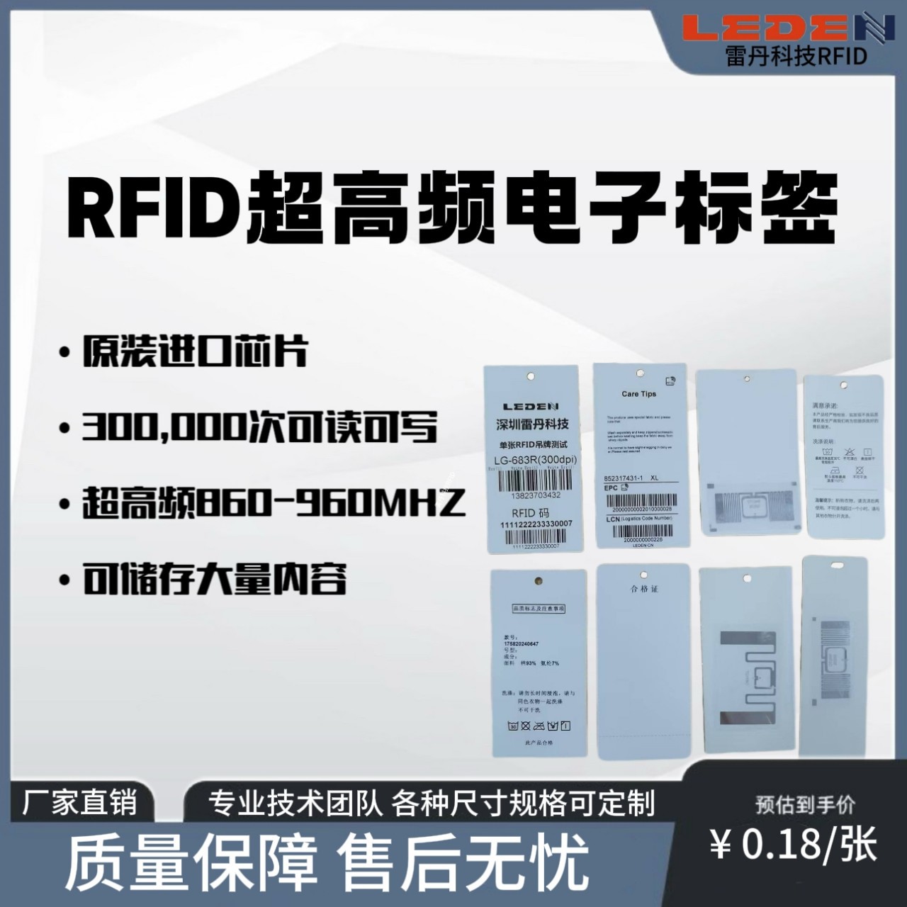 rfid电子标签无源超高频RFid标签吊牌标签生产厂家u9芯片