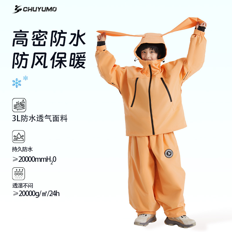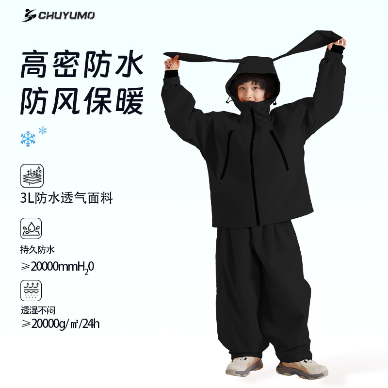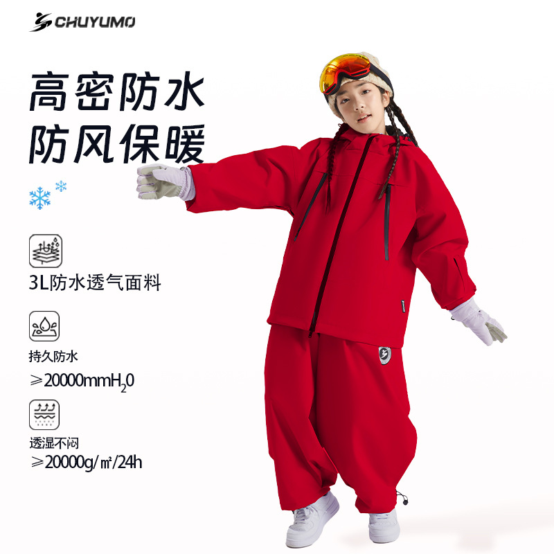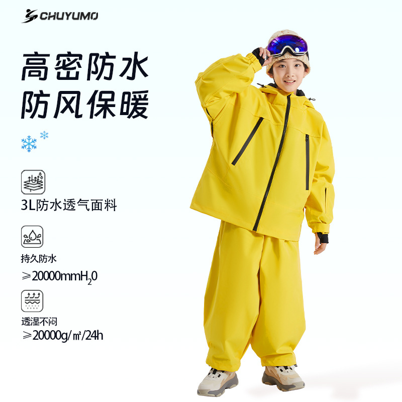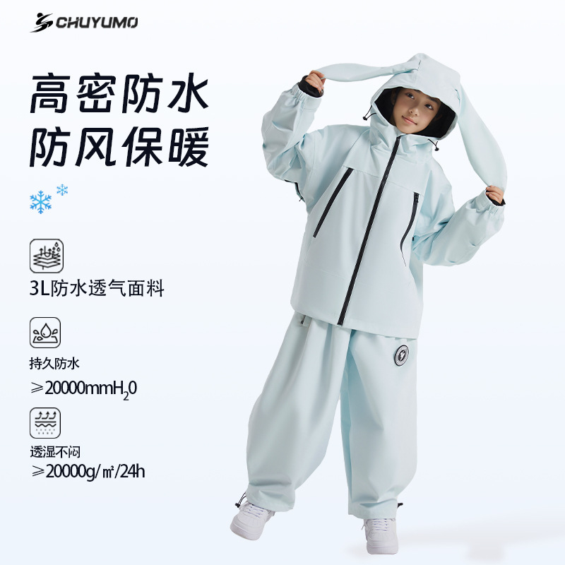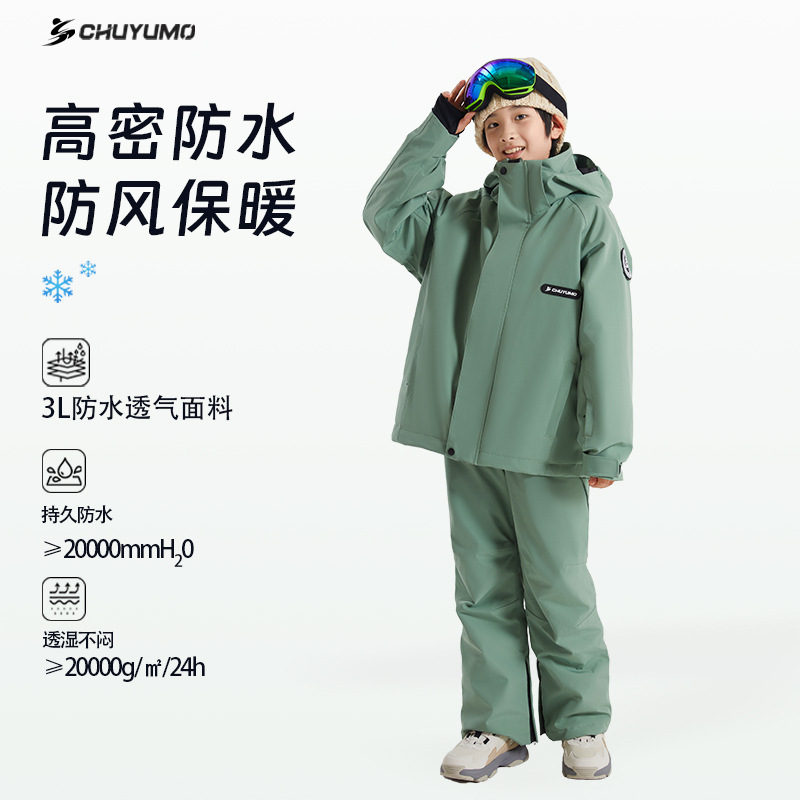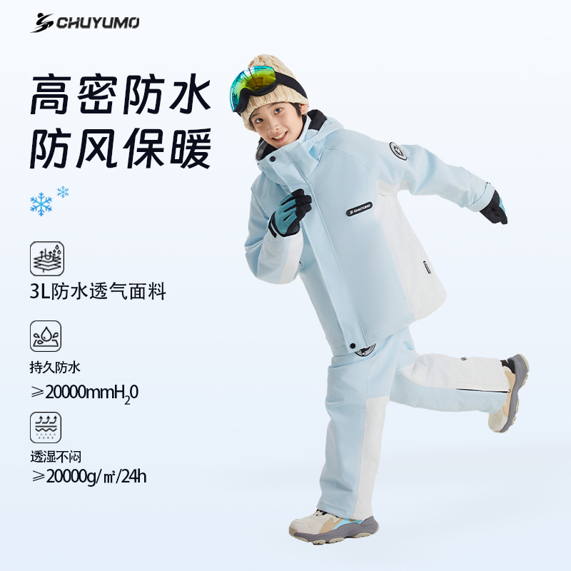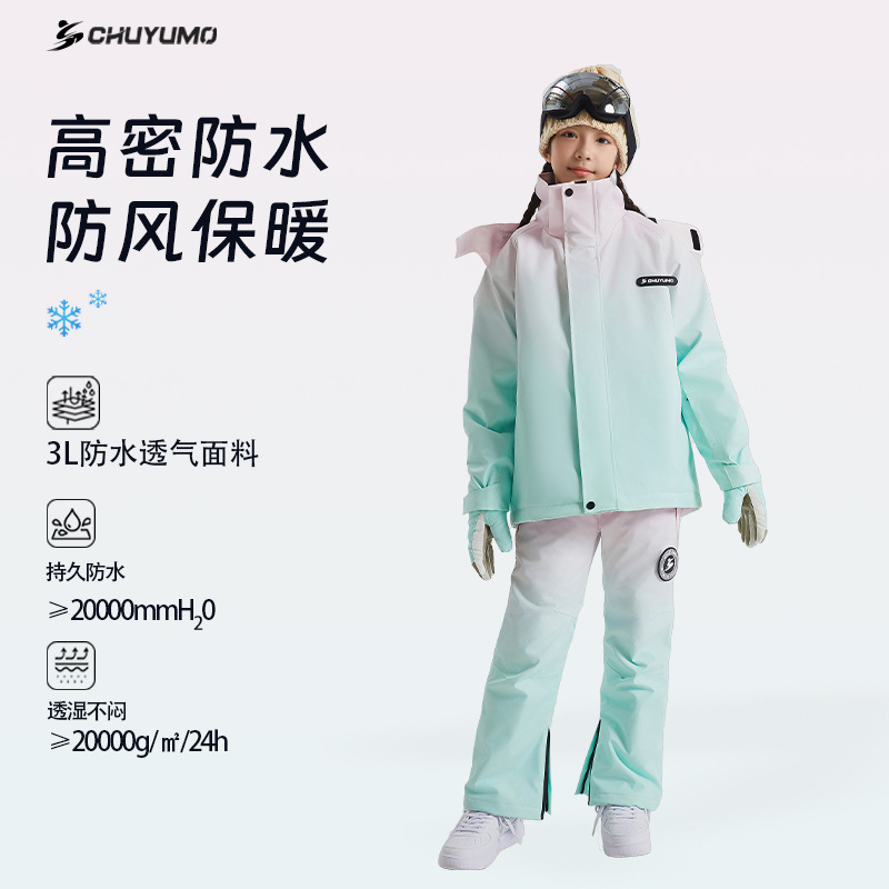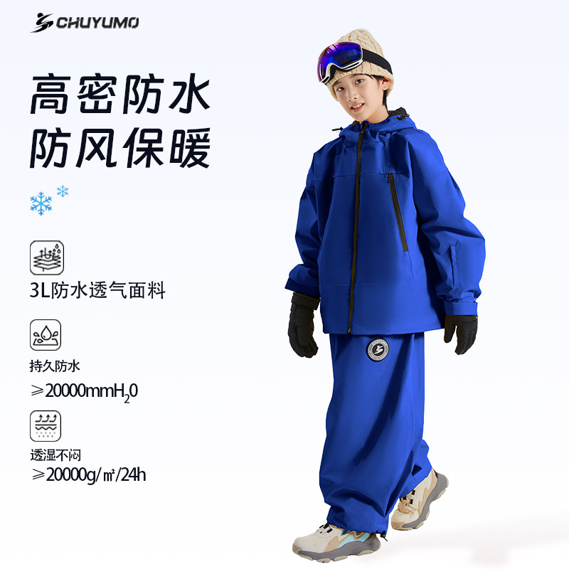 CHUYUMO儿童滑雪服男女童防水保暖户外滑雪衣冬季连帽套装冲锋衣