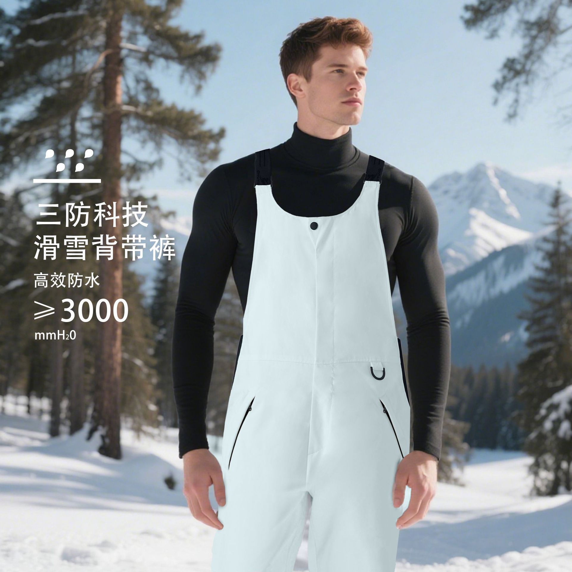 新款男士户外滑雪裤背带裤防水防风保暖速干户外运动滑雪连体直筒