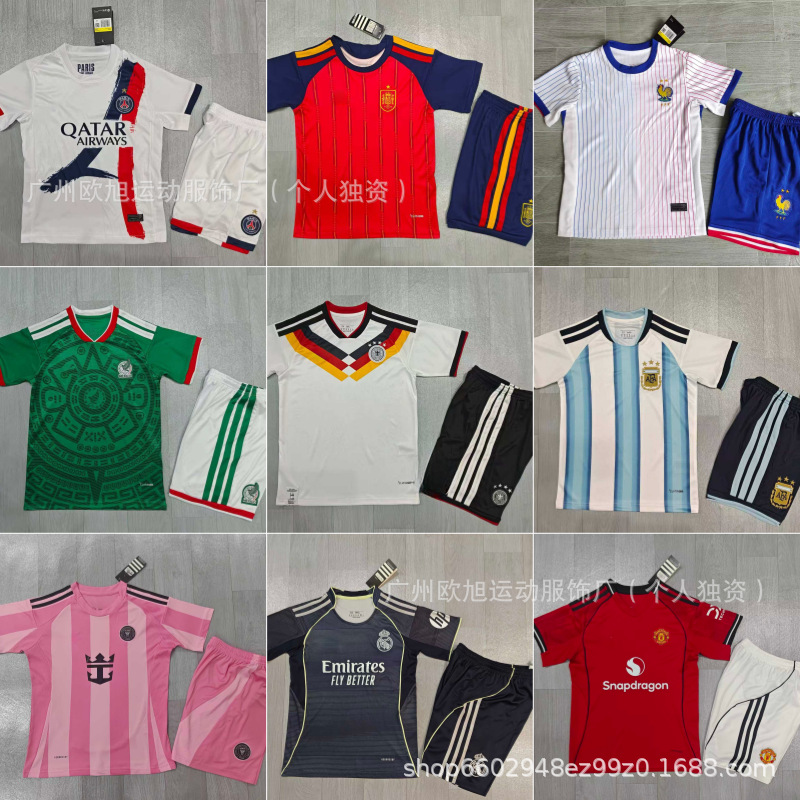 2526童装足球服短袖套装德国墨西哥阿根廷尤文球迷儿童运动球迷版