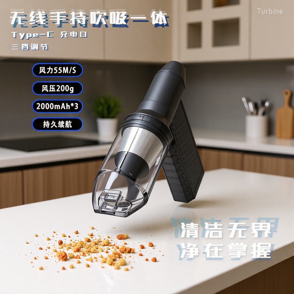 新款便携式大功率照明迷你暴力充电式多场景无线吹尘器吸尘器