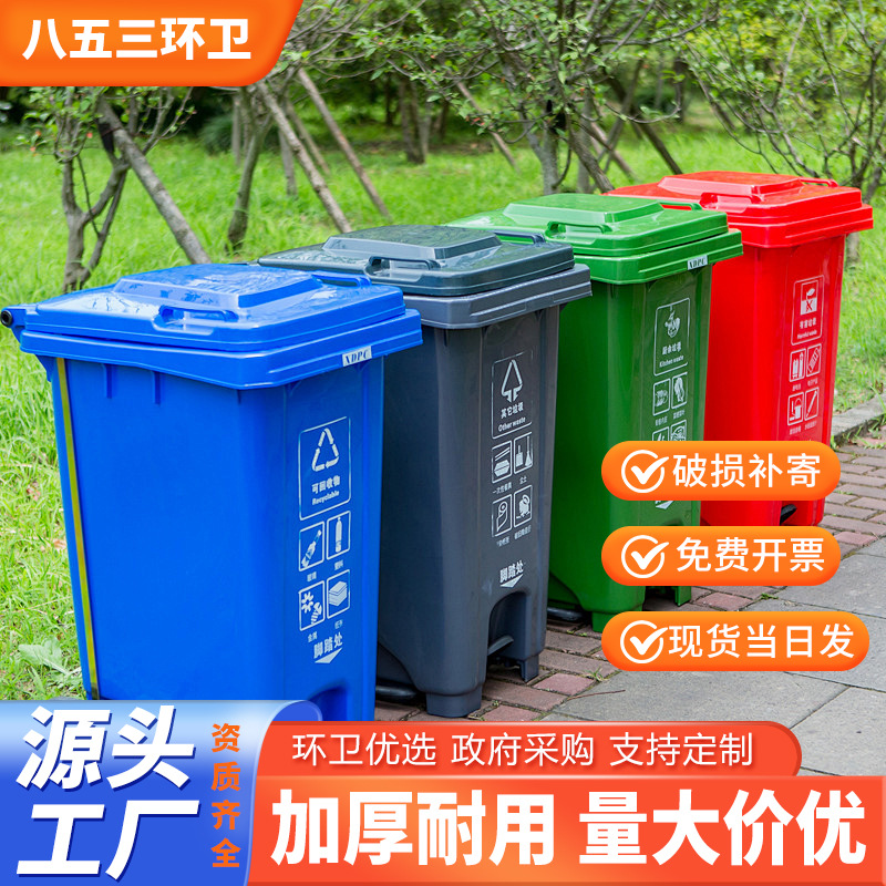 户外垃圾桶大容量商用240L物业分类厨余带盖加厚挂车带轮子脚踏桶