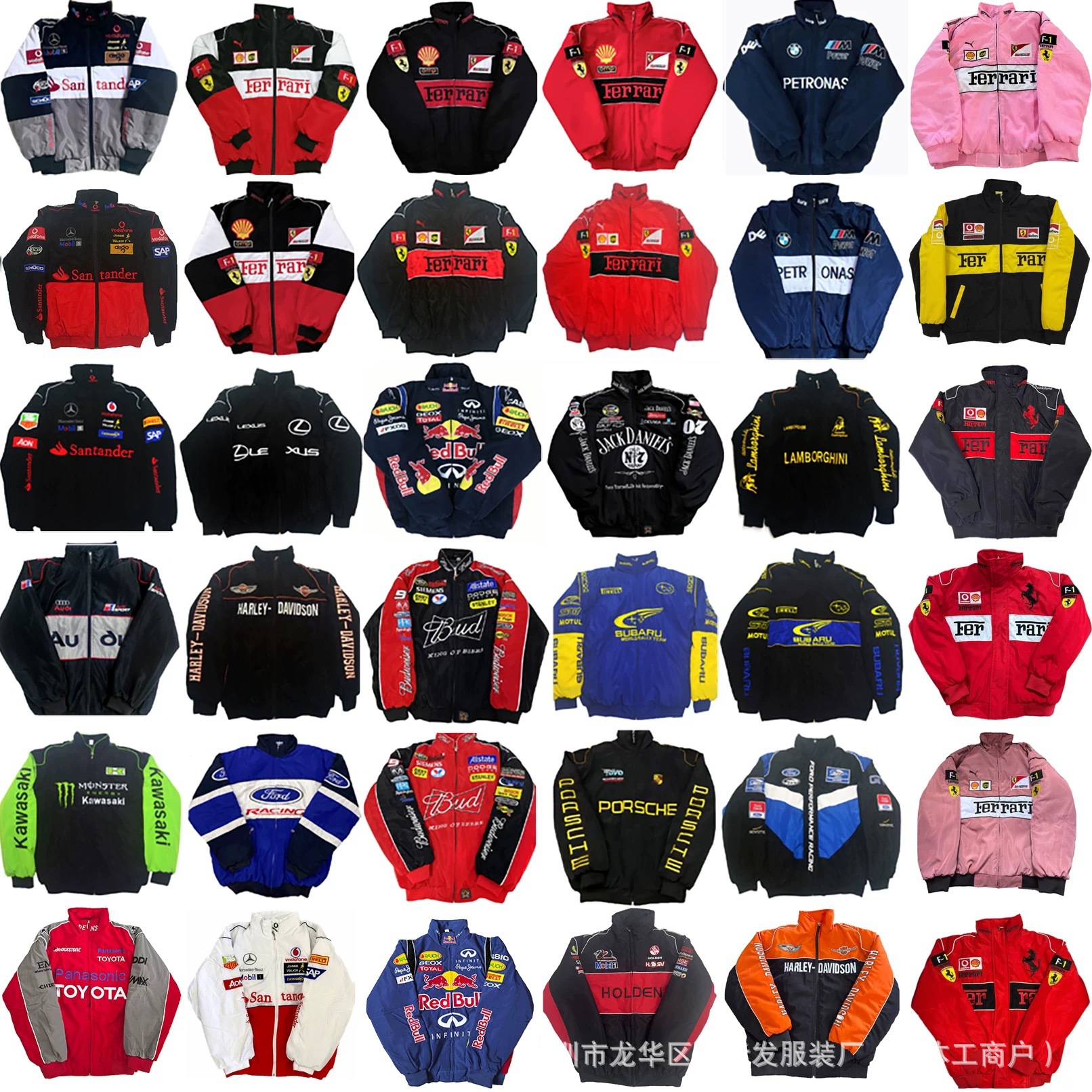 F1刺绣赛车服机车骑行服复古欧美风长袖棉服f1夹克休闲外套定制