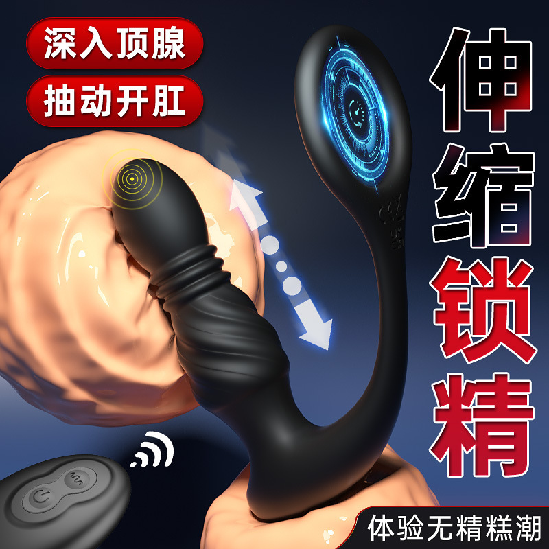 涩妞妞男用前列腺按摩器锁精伸缩后庭遥控肛塞穿戴振动棒情趣用品