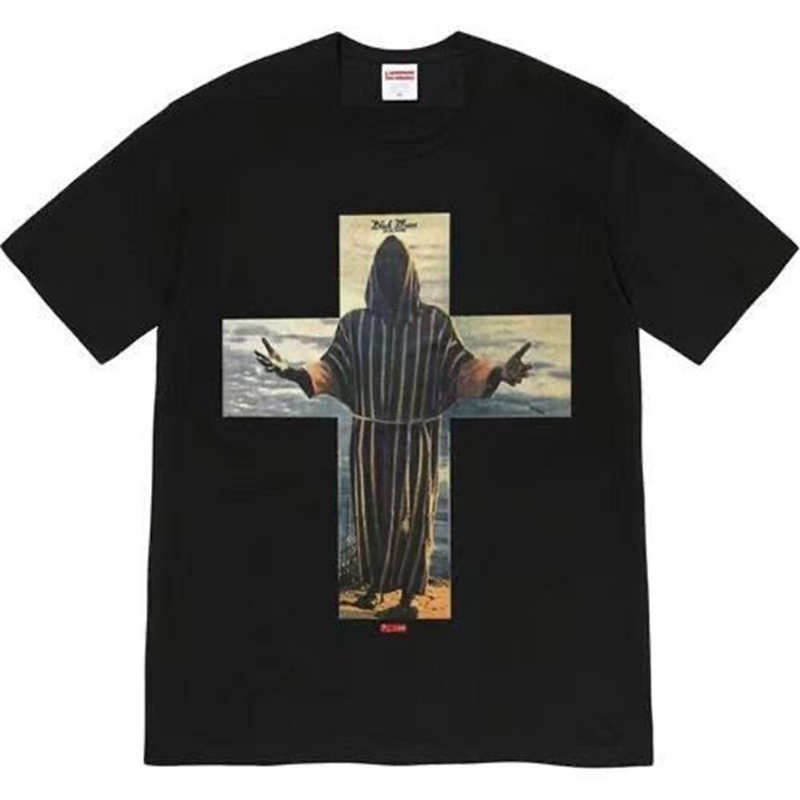 现货高版本SUP 十字架信徒 印花图案T恤潮牌夏季印花宽松潮流