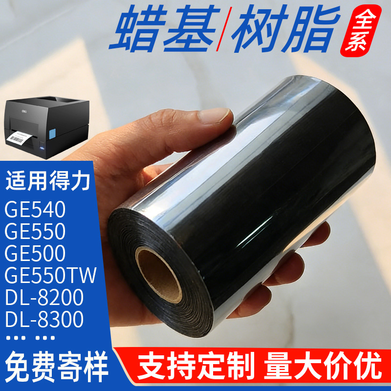 适用得力标签打印机蜡基混合树脂洗水覆膜碳带DL-888T适用色带