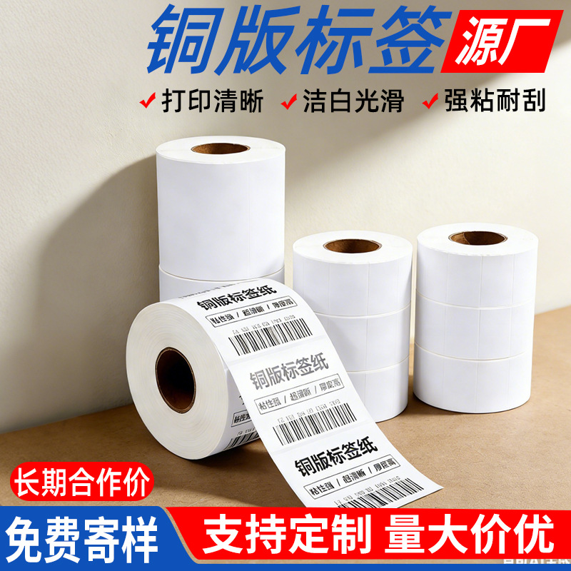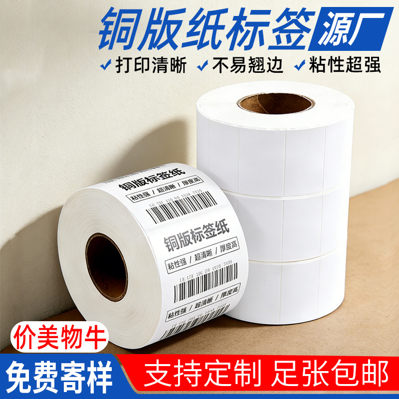铜版纸干胶标签空白条码打印背胶铜板贴纸50×80双排三排面贴