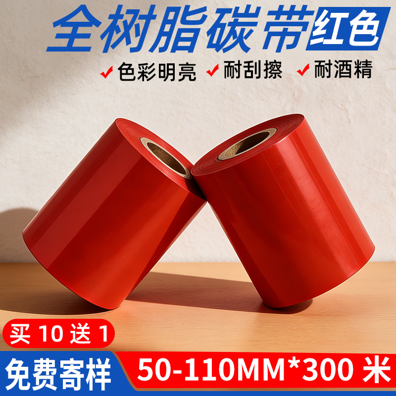 红色碳带全树脂彩色色带卷Xm mm 5 6 7 8 9条码打印机热转印打印