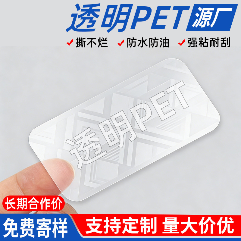 各种规格透明PET标签纸不干胶pet全透贴纸耐撕封口透明贴