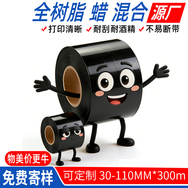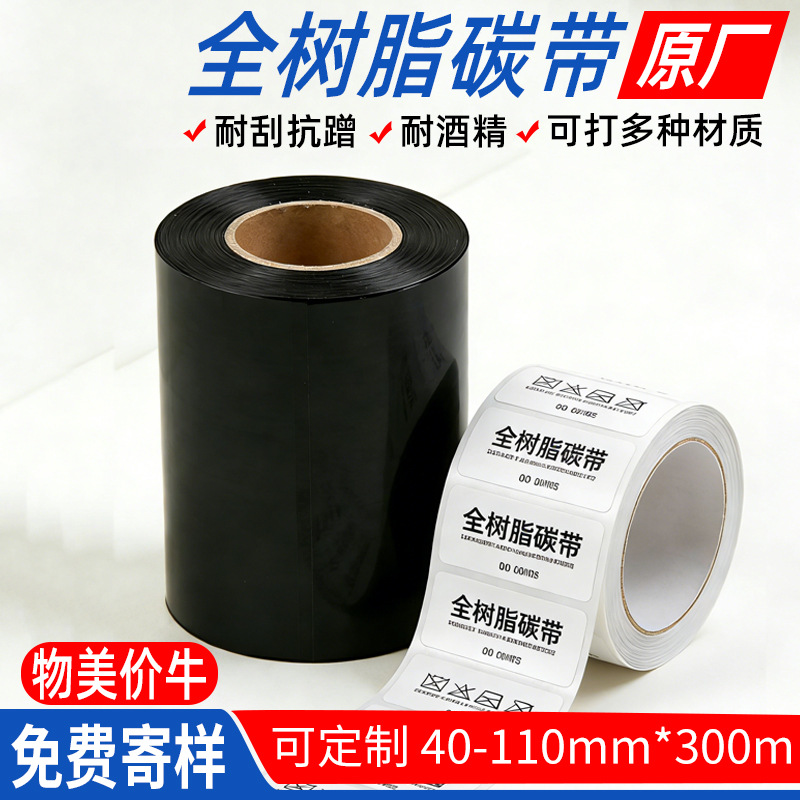 增强全树脂碳带100mm*300m加强型耐刮耐酒精树脂基色带条码打印
