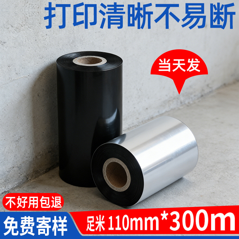 全树脂基碳带110*300哑银标签纸PETPVC耐高温耐酒精防水专用色带