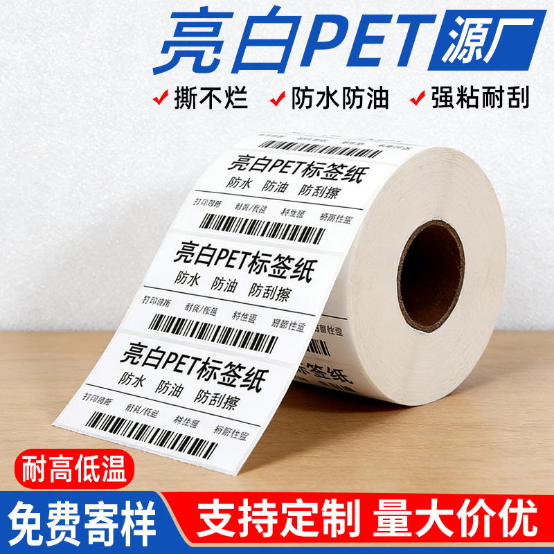 不同规格亮白PET不干胶标签纸空白pet白色贴纸单排双排三排条形码
