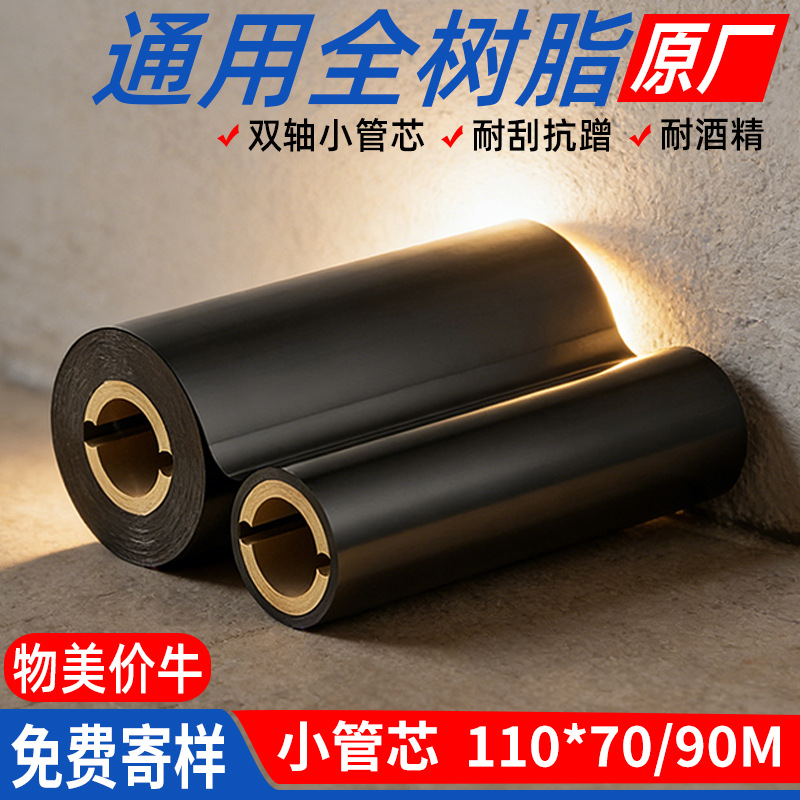 双轴小管芯树脂碳带110mm*70m耐刮耐酒精标签打印机色带110*90