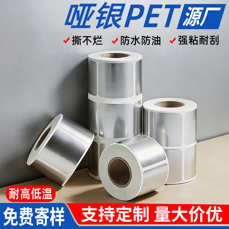 哑银不干胶标签PET贴纸耐高低温防水防油撕不烂热转印打印标签纸