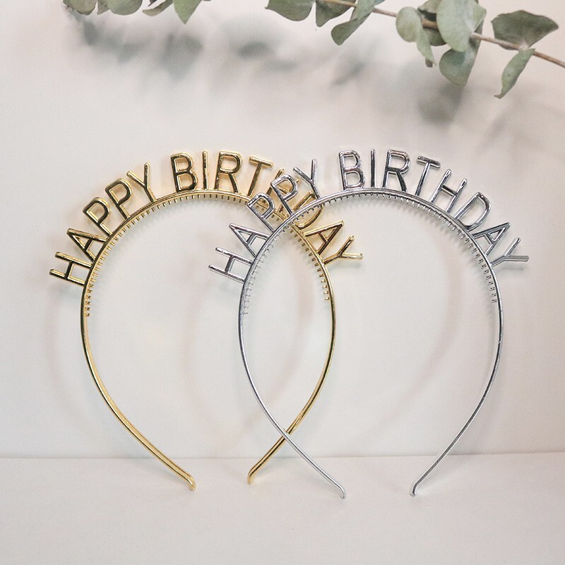 生日快乐字母发箍头饰生日装饰塑料速卖通塑料电镀金银发箍英文字