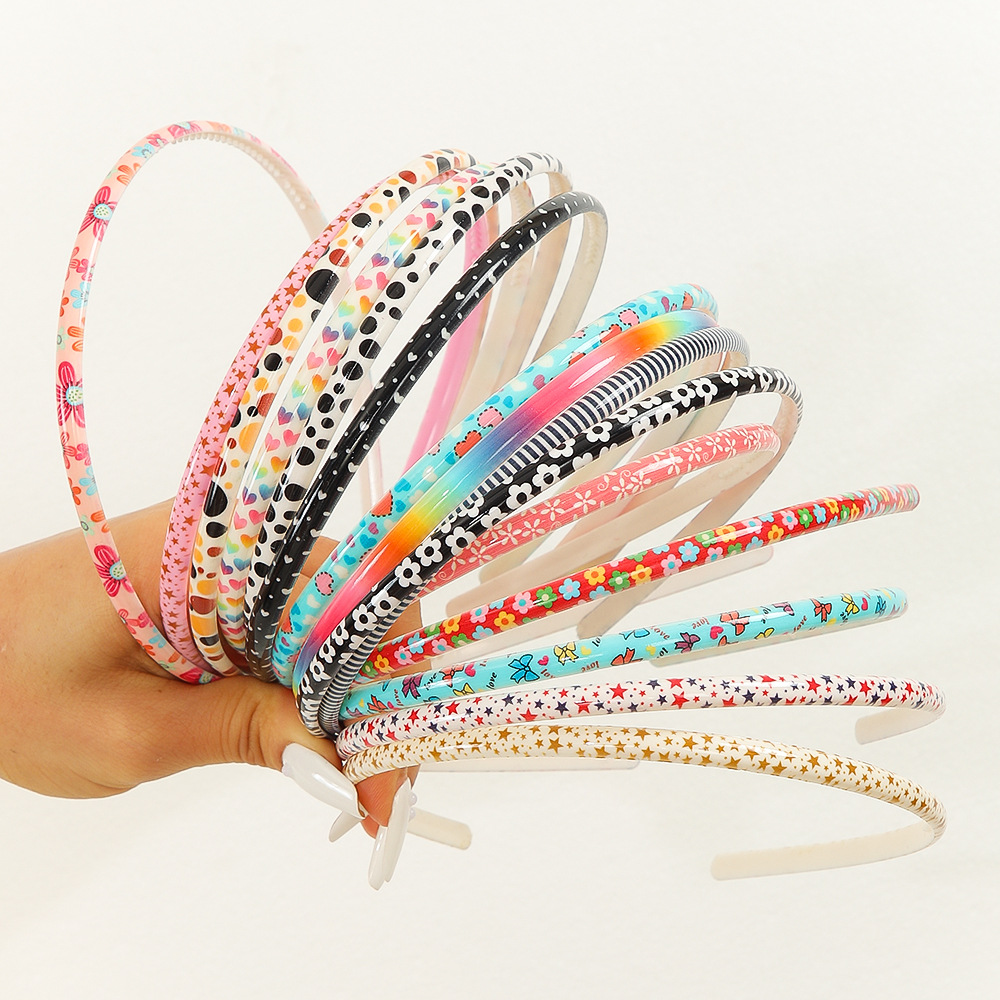 儿童塑料发箍女童可爱印花防滑头箍套装百搭外出碎发整理神器发饰