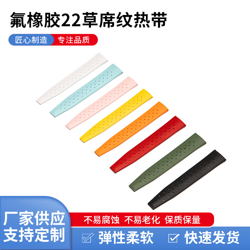 简约氟橡胶草席纹热带18/20/21/22mm手表配件多孔表带现货批发