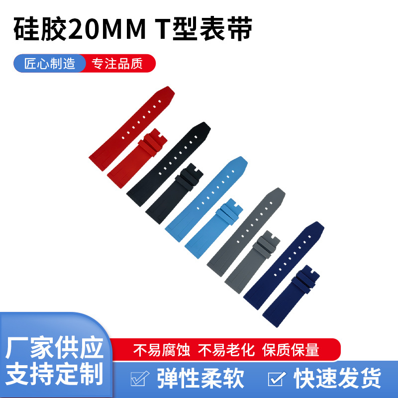 批发新款快拆生耳平口接口T型表带18/19/21/20/23/24mm硅胶时尚OL
