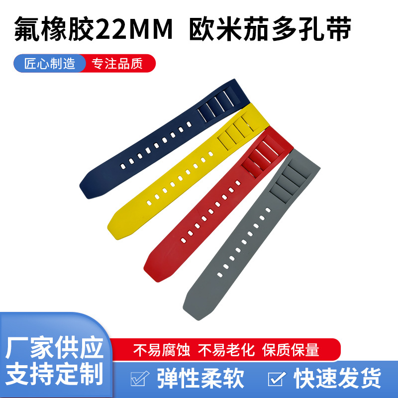 氟橡胶表带适用22/20mm 欧密茄多孔手表配件表带厂家供应批发