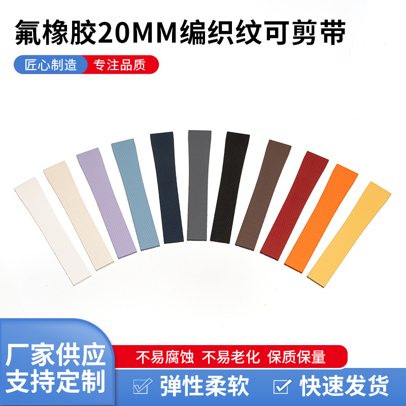氟橡胶20mm 22mm编织纹可剪带手表配件弹性柔软氟胶表带现货批发