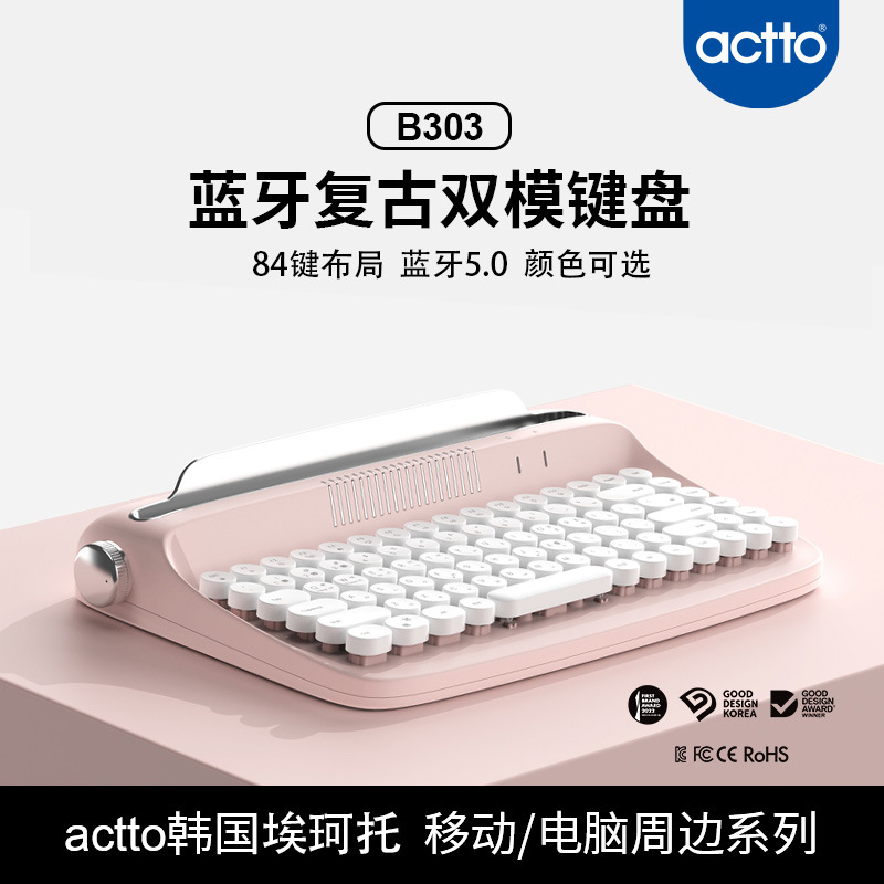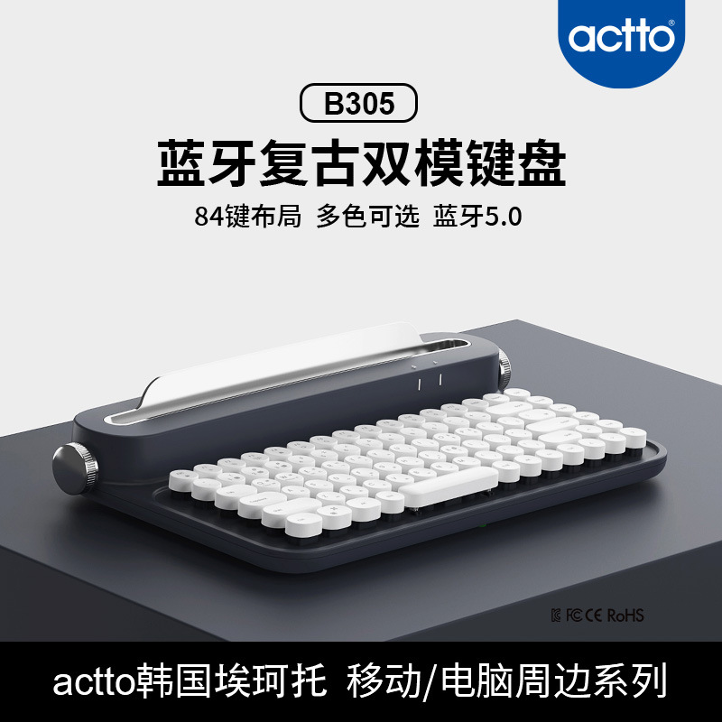 复古无线双模键盘定制B305蓝牙5.0圆形键帽actto办公薄膜键盘批发