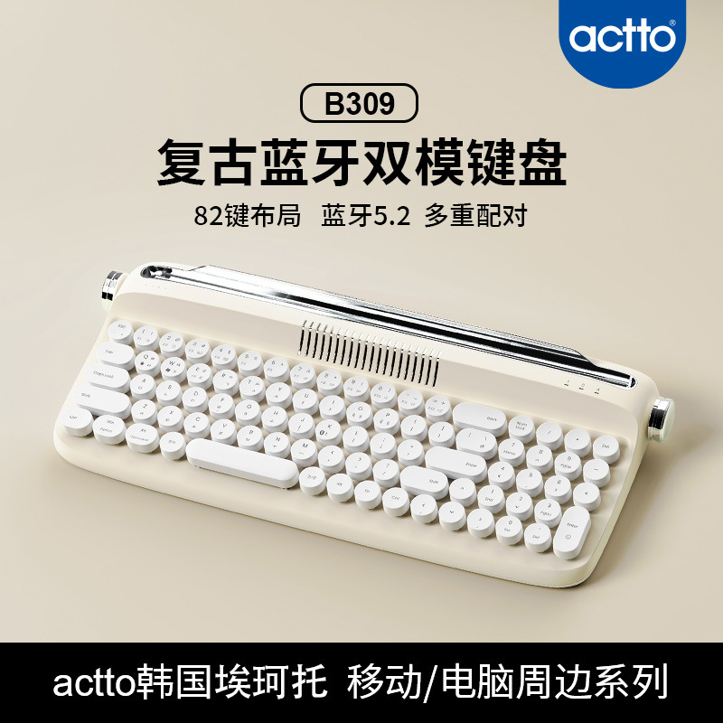 actto双模卡槽键盘B309批发无线蓝牙5.2复古圆帽82键薄膜键盘定制