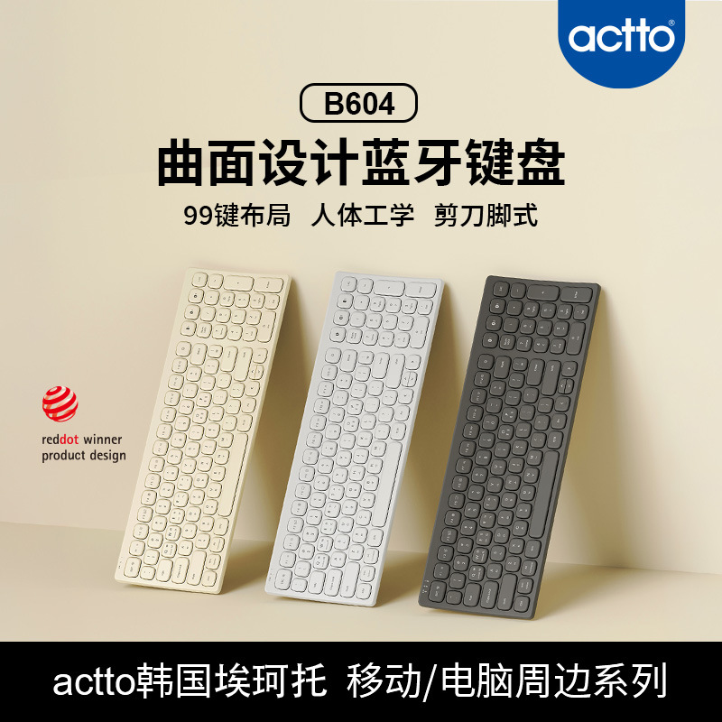 actto三模曲面蓝牙键盘定制 B604曲面99键剪刀脚人体工学静音键盘