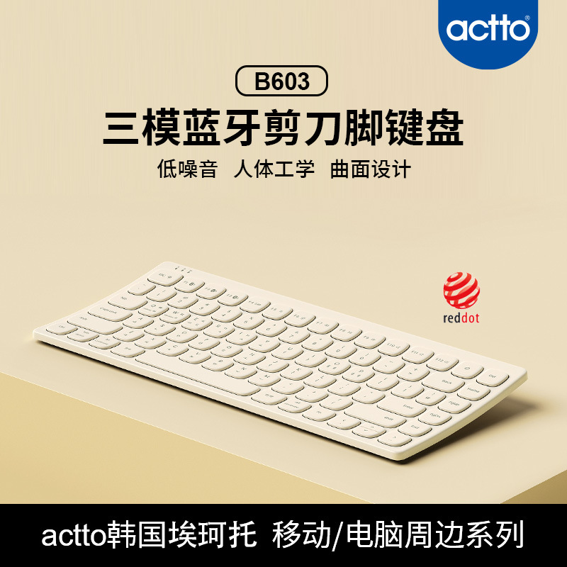 actto人体工学剪刀脚键盘定制 B605低噪音104键 曲面蓝牙充电键盘