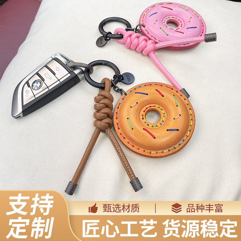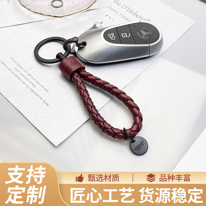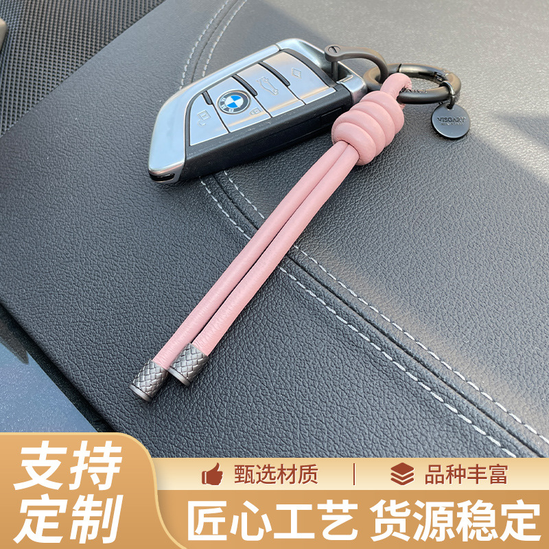 新款时尚头层羊皮挂绳包包挂饰配件diy手工编织汽车钥匙扣批发