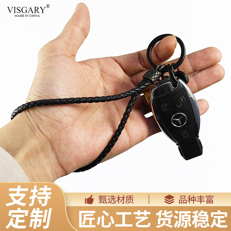 手工编制羊皮绳扣汽车钥匙扣套手腕防丢挂绳哑枪色钥匙扣挂件批发