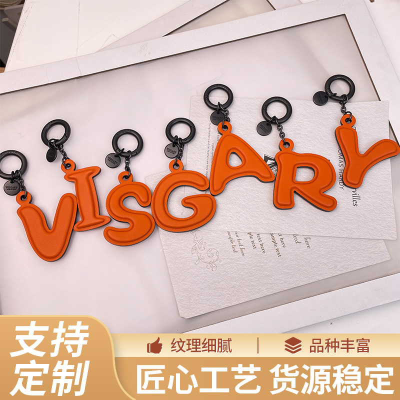 新款厂家批发时尚26个全字母头层牛皮钥匙扣挂件可爱箱包饰品挂饰