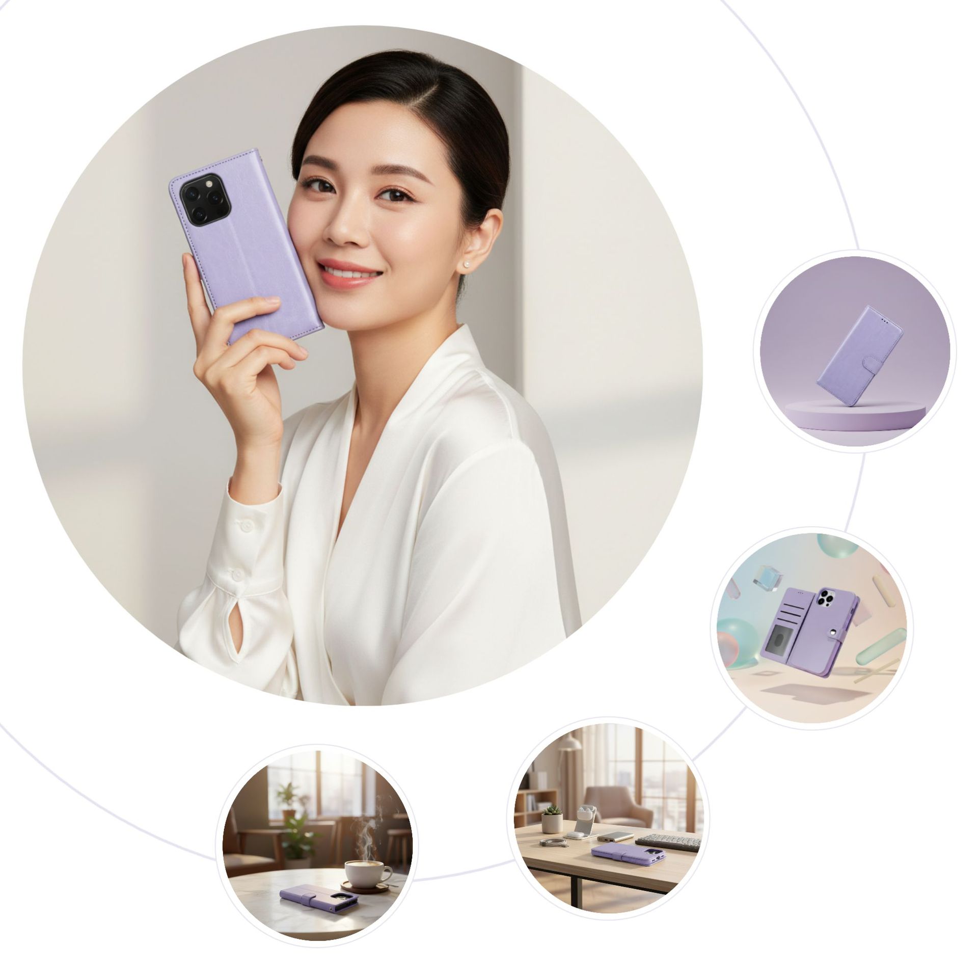 适用iPhone17ProMax手机壳工厂皮套翻盖插卡全包防摔莫兰迪紫女生