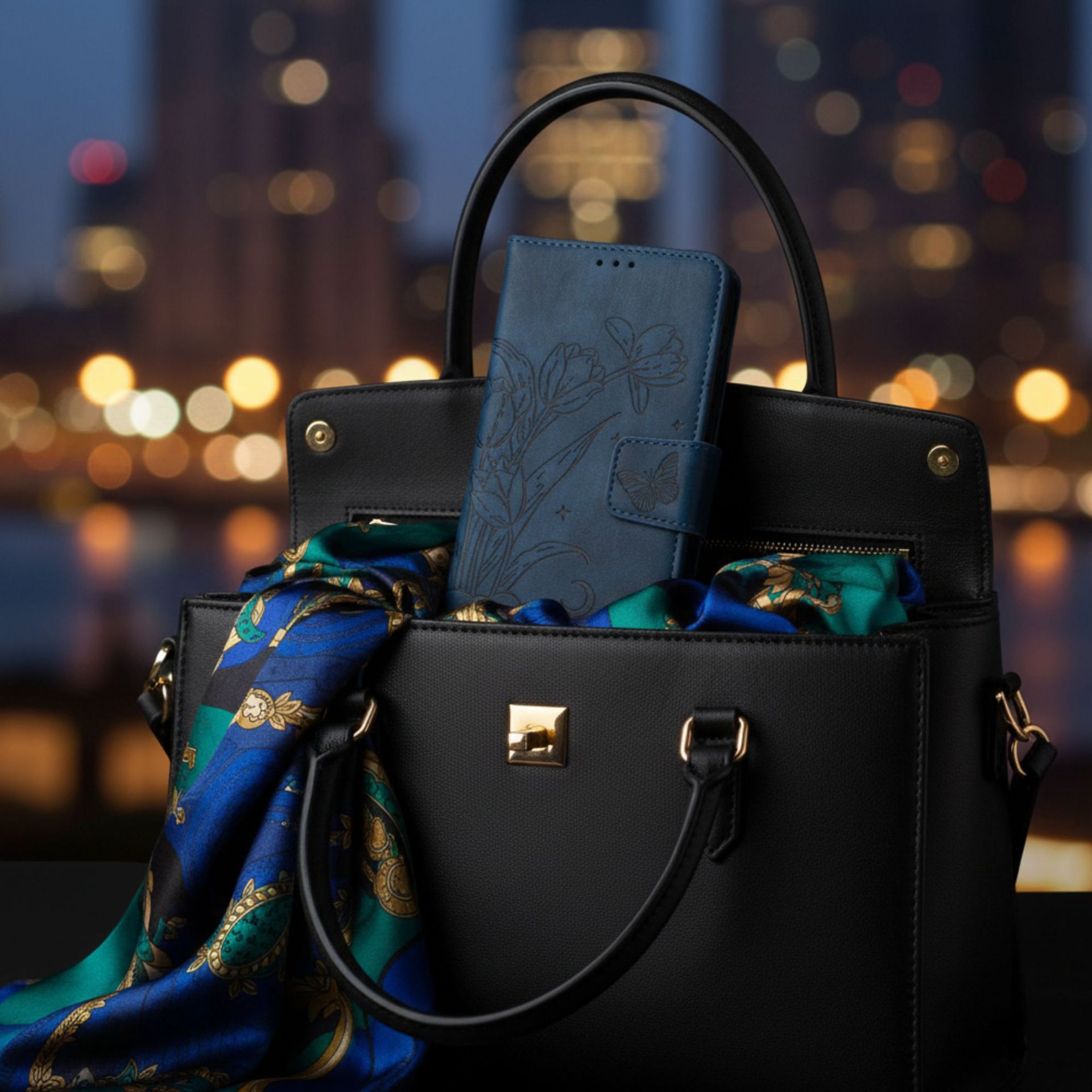 适用苹果iPhone16ProMax手机壳复古印花皮套藏蓝色翻盖全包防摔卡