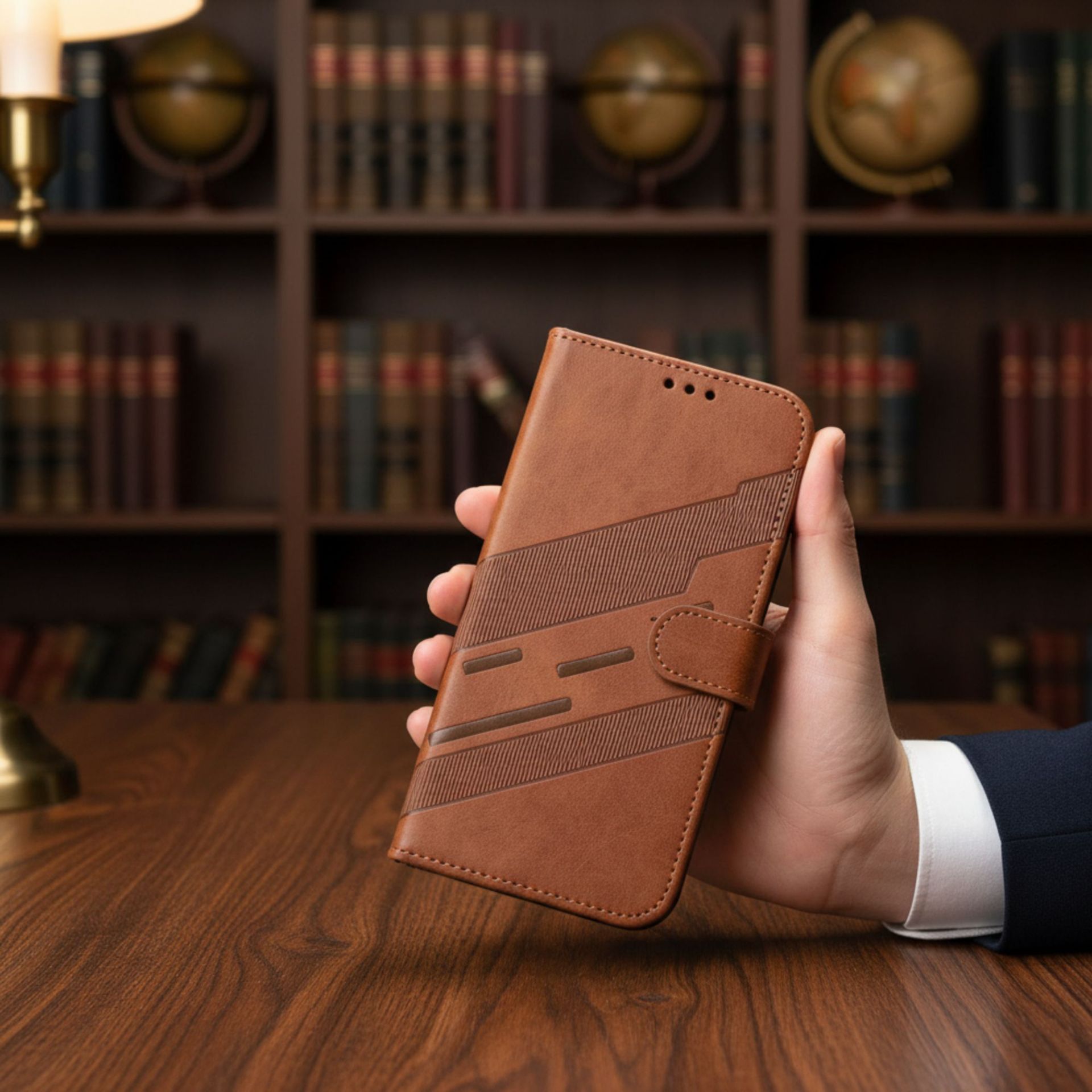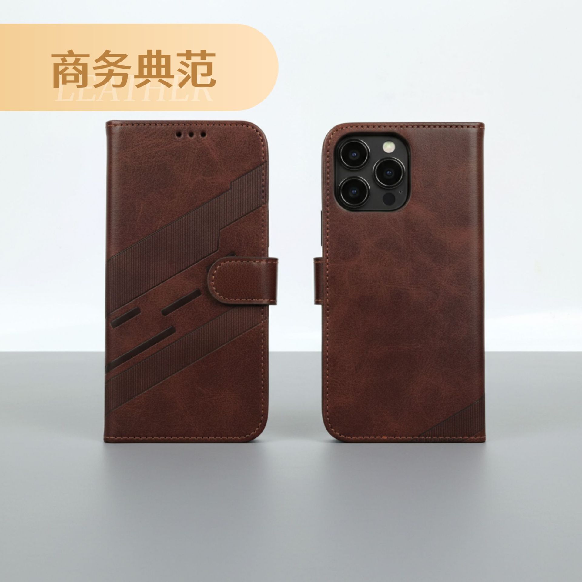 苹果iPhone16ProMax手机壳皮套复古棕色翻盖插卡全包防摔男商务