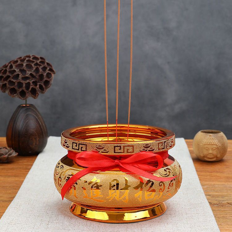 陶瓷砂金香炉家用供奉插香室内招财烧香炉佛堂用品佛具寺庙香薰炉