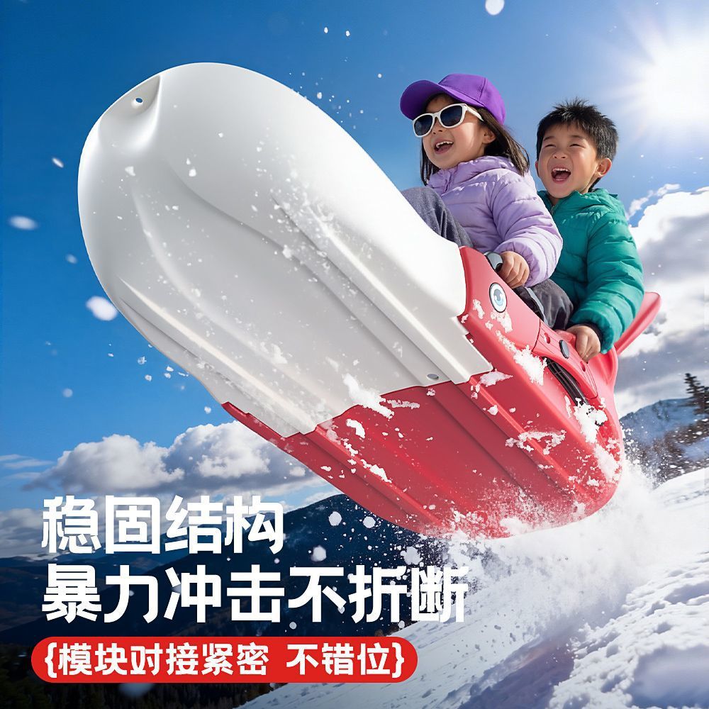 双人滑雪板成人儿童亲子滑草板地片雪橇爬犁滑沙板带刹车滑雪神器