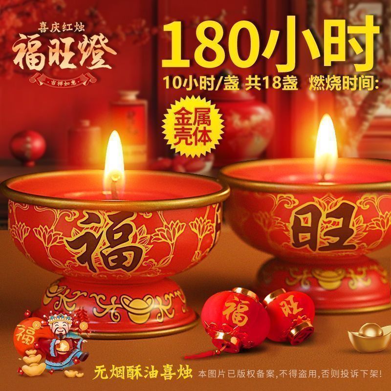 新年福旺蜡烛过年家用小香烛纯植物酥油灯金属座灯长明无烟无味