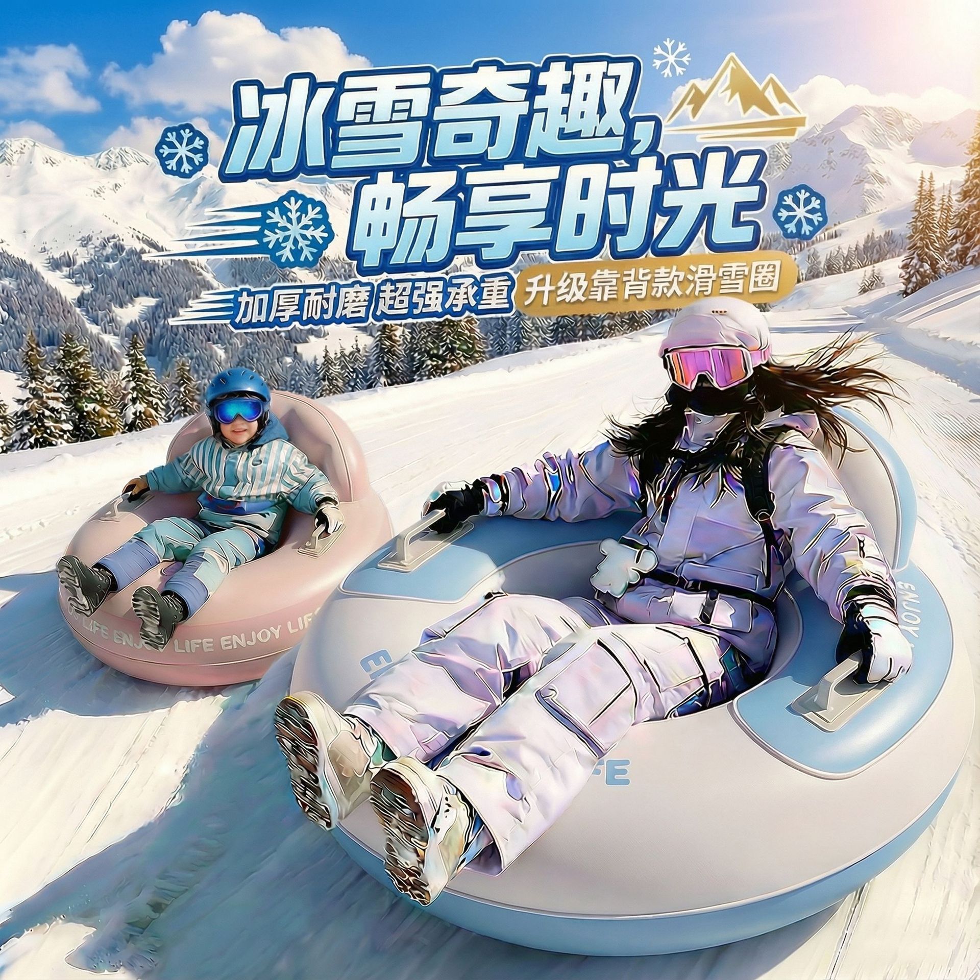 滑雪圈成人儿童轮胎圈加厚双人亲子充气雪地耐磨户外玩雪工具装备