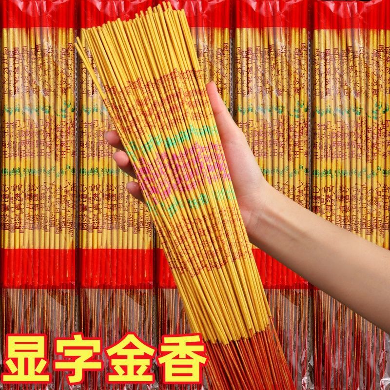 金色檀香财神香显字香家用加粗敬神香微烟烫金字香室内外上香通用