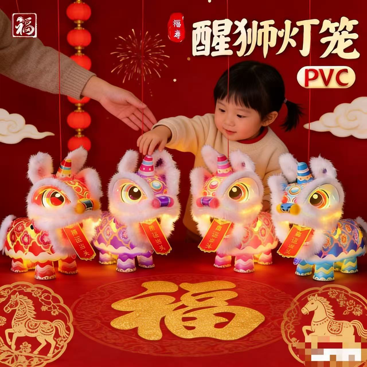 10个新款春节手工儿童发光花灯材料醒狮手提灯笼舞狮冬瓜形简约风
