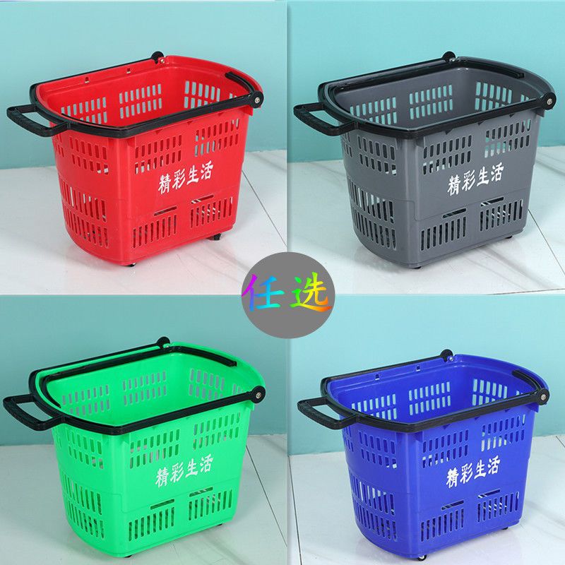 超市购物篮手提篮拉杆带轮便利店购物篮塑料购物筐购物车买菜家用