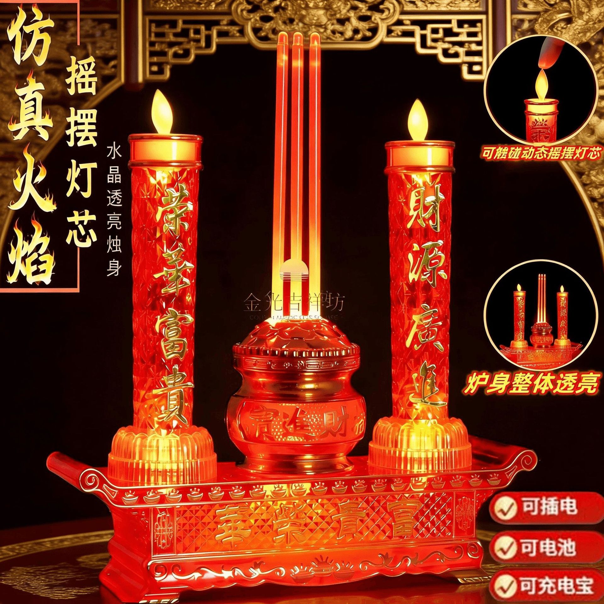 LED灯富贵电香炉烛台财神灯插电插电式电子香电子灶灯电炉长明灯