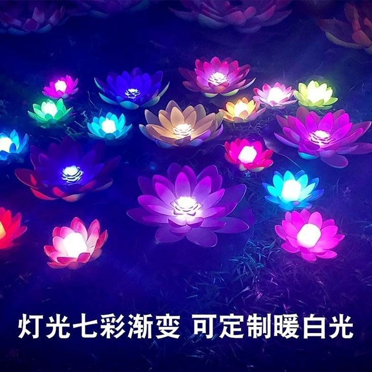 led电子荷花灯水漂水上莲花灯景区户外七彩发光渐变蜡烛河灯批发